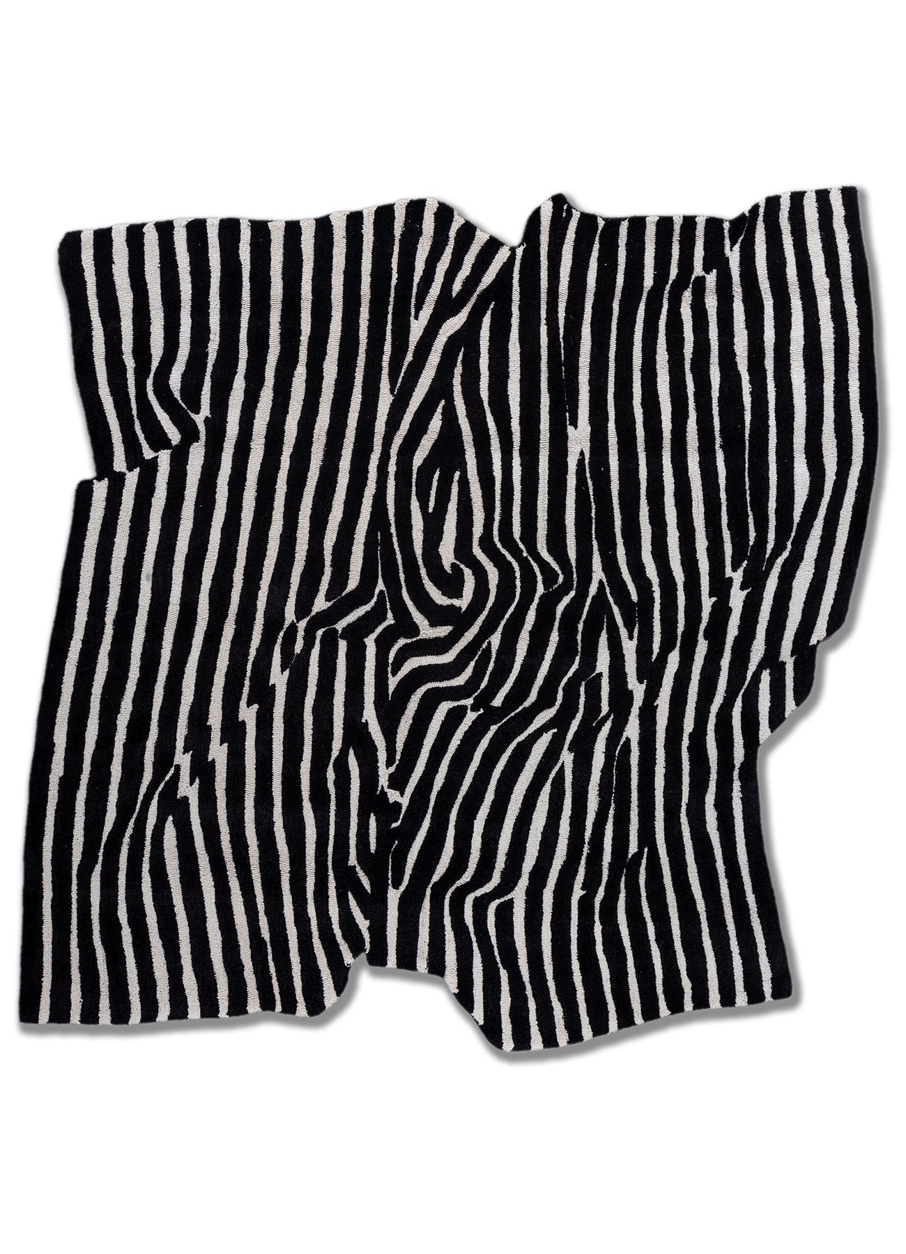 Bold vertical striping fractured by organic distortion. Foundry 04 introduces tension between structure and fluidity, resulting in a graphic, confident rug with strong presence.
